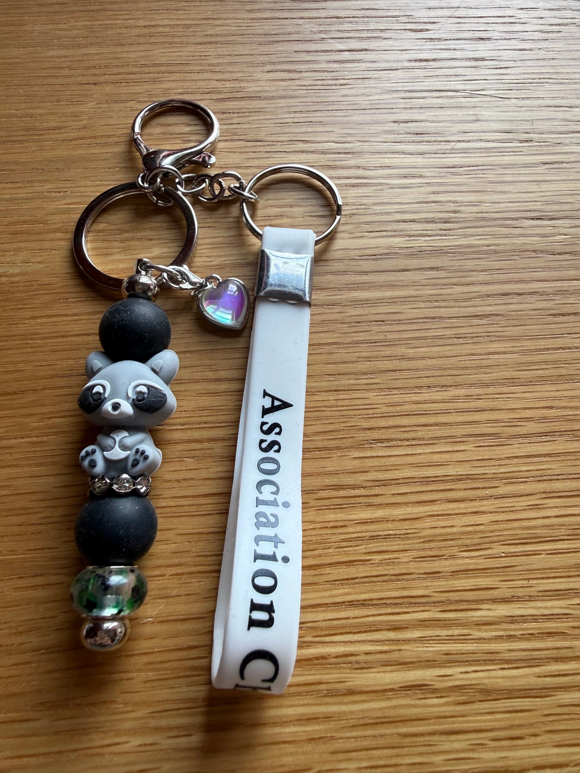 Porte-clés raton laveur & bracelet blanc